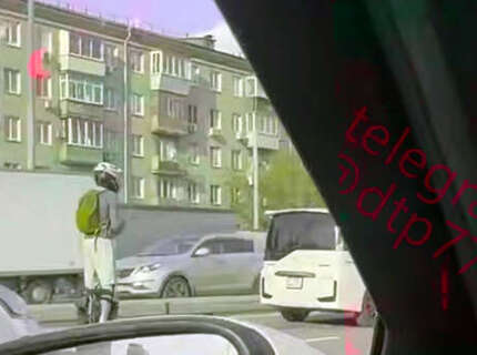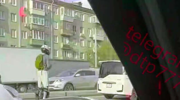 В Москве на видео попало, как моноколесник промчался в потоке машин