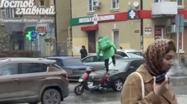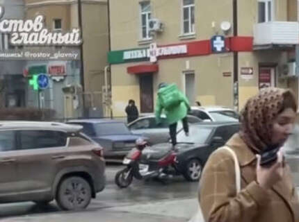В Ростове на видео попало, как курьер разбил лобовое стекло Lada Priora