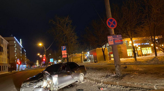 Пьяный водитель врезался в столб в центре Тюмени