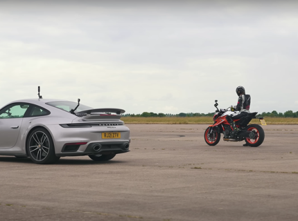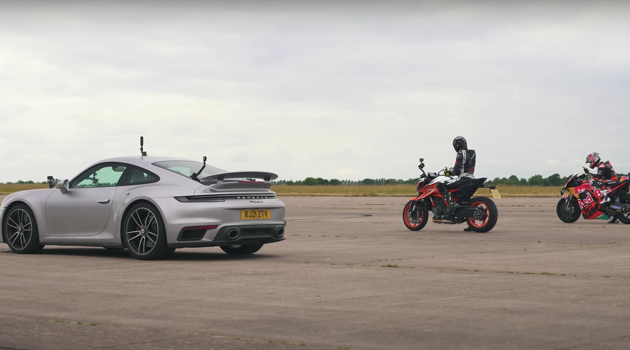 Спорткар Porsche сравнили в дрэге с дорожным и гоночным мотоциклами KTM
