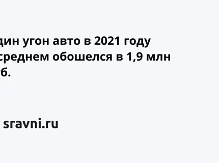 Один угон авто в 2021 году в среднем обошелся в 1,9 млн руб.