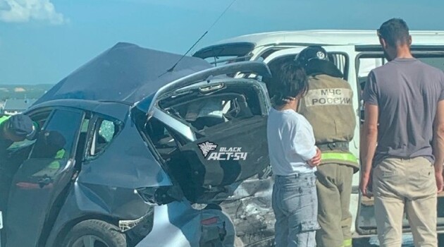 В Новосибирской области произошло тройное ДТП: столкнулись Toyota HiAce, Mazda 3 и ГАЗель