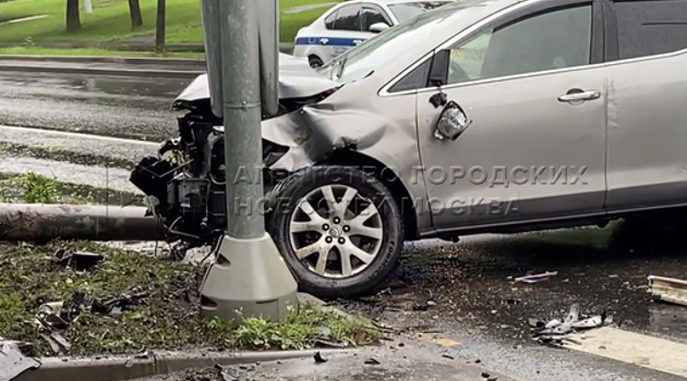 В Москве на видео сняли последствия жесткого столкновения Mazda со столбом