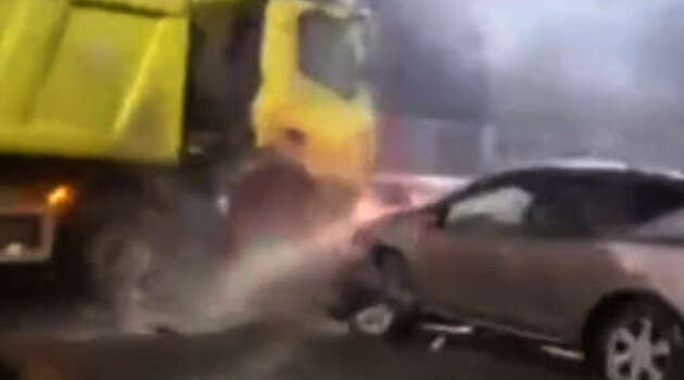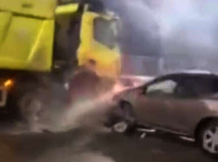 В Подмосковье массовое ДТП с грузовиками на гололедице попало на видео