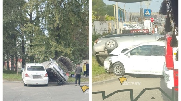 В Новосибирске на авторынке на Петухова один Nissan «залез» на другой