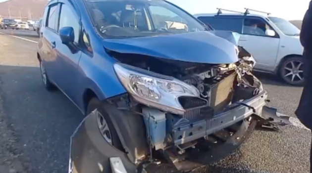Взорвавшееся колесо джипа на мосту в Приморье привело к ещё одному ДТП — видео
