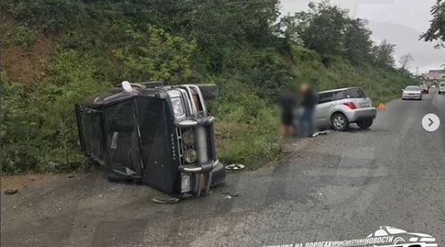 Во Владивостоке в результате ДТП перевернулся внедорожник