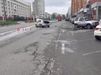 Уснувший за рулем таксист врезался в два автомобиля на улице Горького