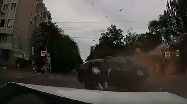 Кувыркающийся после ДТП автомобиль сбил человека в Ростове. Видео