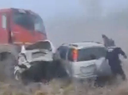 Момент аварии с 10 машинами под Красноярском попал на видео