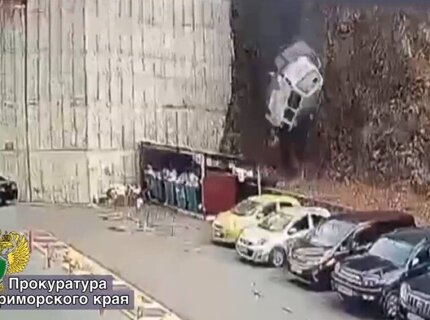 В Приморье падение микроавтобуса с обрыва попало на видео