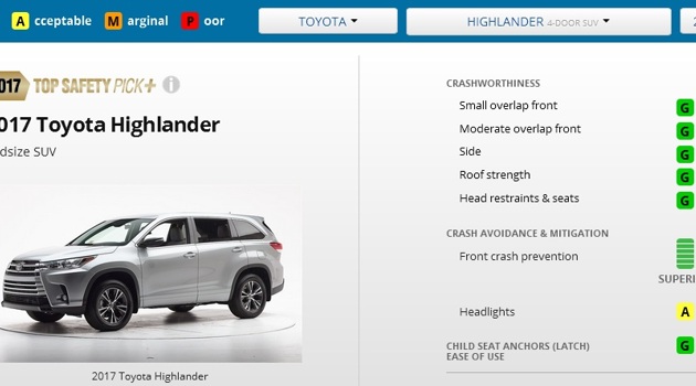 Toyota Highlander 2017 вновь признан самым безопасным