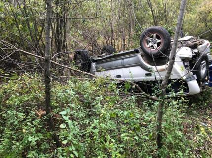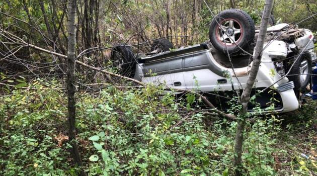 Колесами в небо: в Приморье автоледи на Toyota Land Cruiser Prado устроила ДТП с опрокидыванием