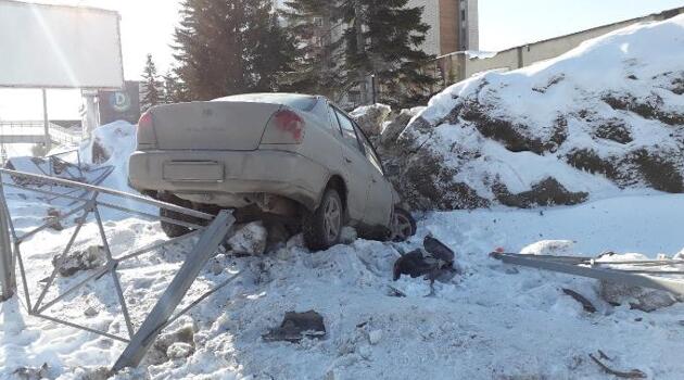 «Летающий» автомобиль застрял в ледяной горе в Бердске