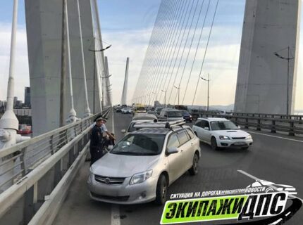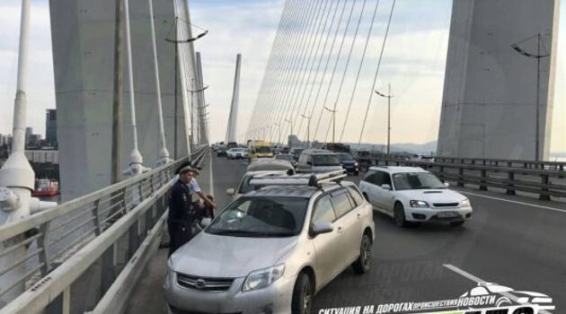 Взрыв колеса спровоцировал серьёзное ДТП на Золотом мосту Владивостока