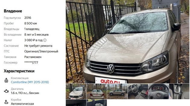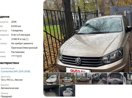 Практически новый Volkswagen Polo Sedan 2016 года выставили на продажу в РФ