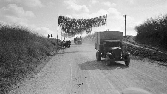 В кадре — немецкий лёгкий многоцелевой заднеприводный армейский автомобиль Volkswagen Тур 82 (Kuebelwagen). Этот неприхотливый и выносливый трофей в годы войны нередко использовали младшие советские командиры, разведчики и связисты.