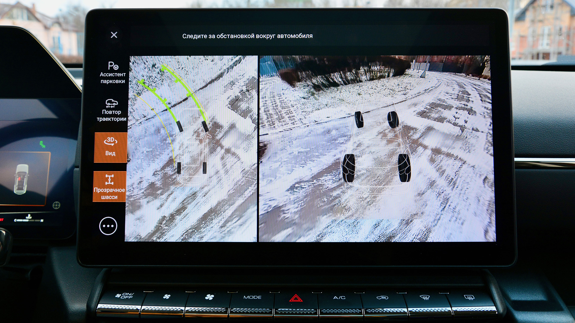 За выбор режимов работы трансмиссии отвечает шайба на центральном тоннеле. Покрутив её, помимо «стандартной» асфальтовой конфигурации можно настроить «спортивные», «экологичные» режимы, а также целый набор внедорожных. Среди последних есть «снег», «трава/гравий», «песок», «грязь», и усреднённый режим под названием «неровности». При движении по снегу, в большом количестве выпавшему в столице в период тест-драйва, режимы «снег» и «песок» оказались скорее полезны, чем нет.