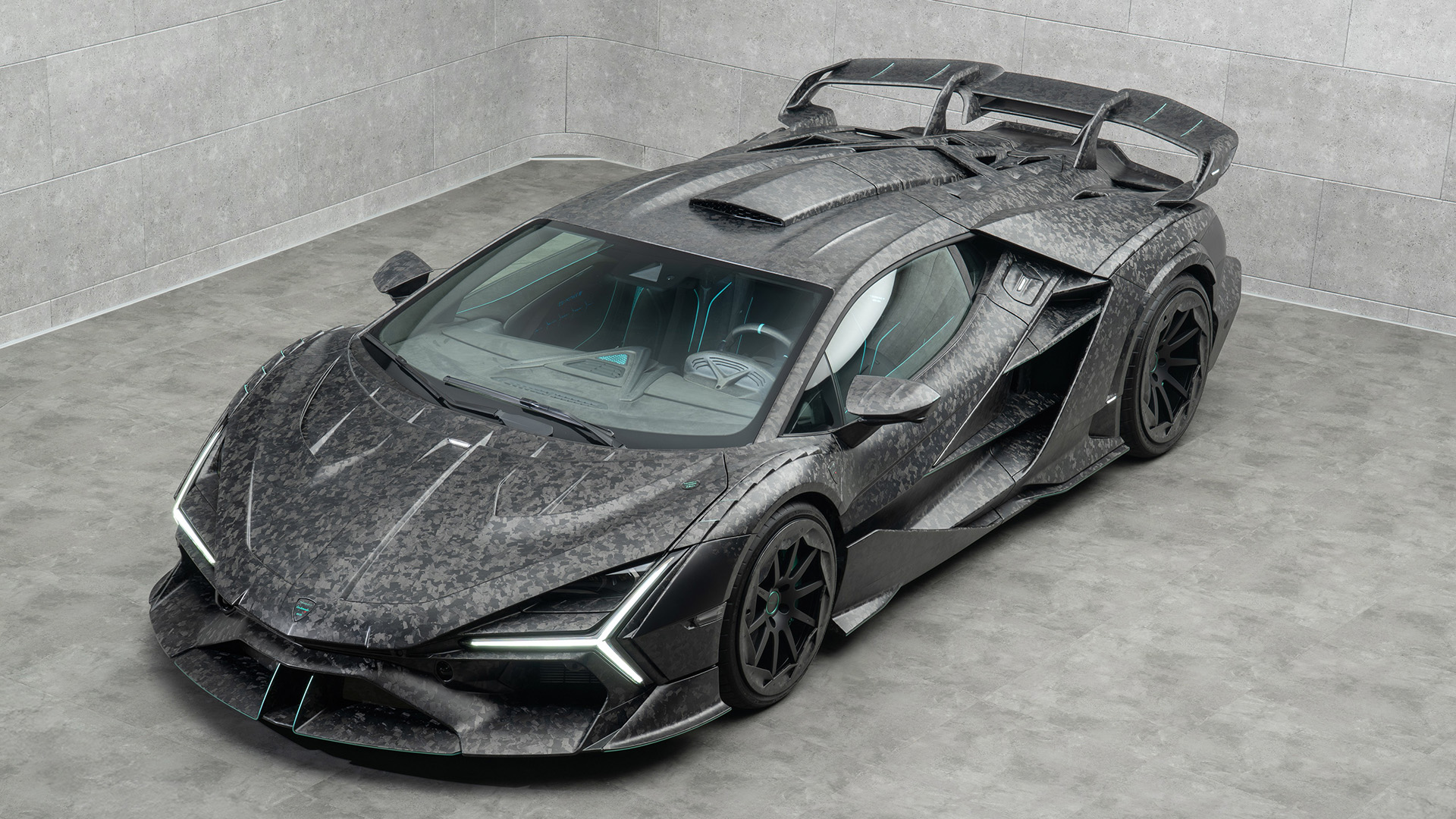 Новинка обзавелась полностью новыми кузовными панелями из кованого углепластика, которые сочетаются с агрессивным аэродинамическим обвесом и фирменными разноразмерными колёсами Mansory FV.10. Салон отделан чёрной алькантарой с традиционными для Mansory вставками бирюзового цвета. За счёт доработки 6,5-литрового атмосферного V12 общая мощность гибридной силовой установки выросла до 1 120 л.с.