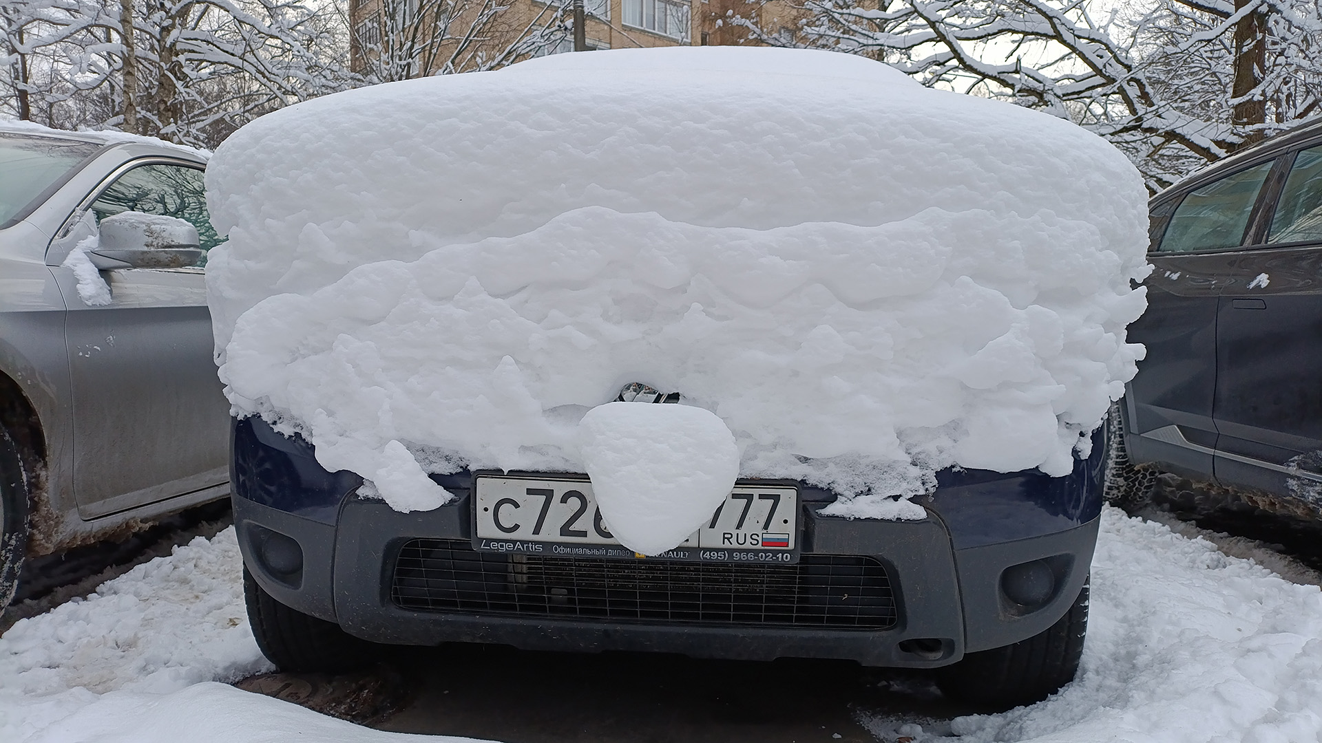 Не ленитесь и обязательно уберите снежную шапку с крыши автомобиля. В движении при резком торможении она может съехать вперёд, напрочь закрыв лобовое стекло. Так недалеко и до аварии.
