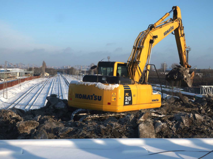 В районе путепровода на Малиновского начали готовить стройплощадку подъездных путей