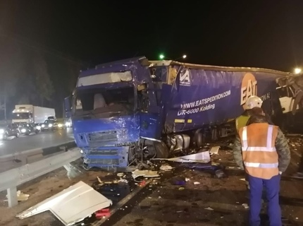 Три фуры и микроавтобус с журналистами столкнулись около Вилги