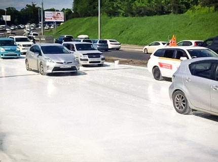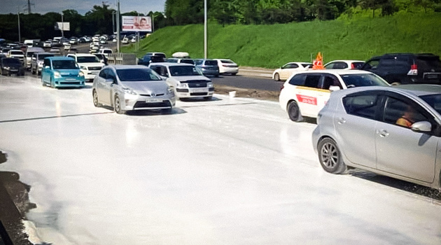 Сплошная во всю дорогу: российскую трассу залило белой краской