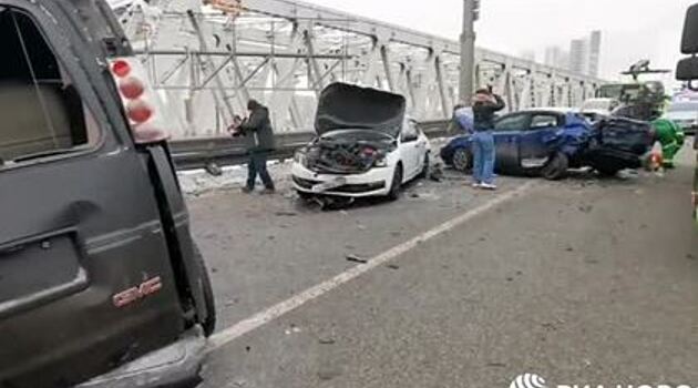 Появилось видео с места ДТП на ТТК в Москве, где столкнулись более 10 авто