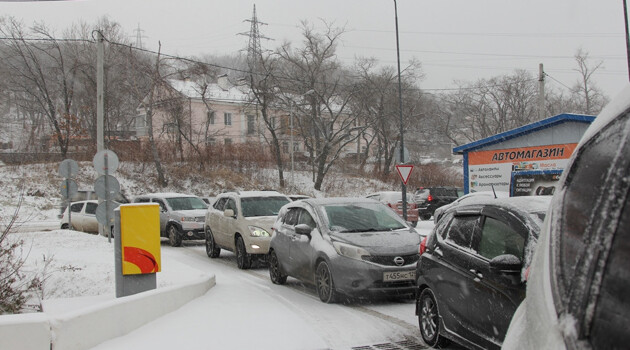 Легче не становится: Владивосток продолжает стоять в многочасовых пробках после снегопада