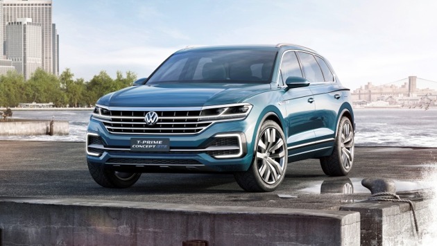 В сеть выложили «свежие» шпионские фотографие флагманского внедорожника Volkswagen Touareg нового поколения, замаскированный прототип которого был замечен на автобане. Как неоднократно отмечалось ранее, мировая премьера нового VW Touareg должна состояться в конце 2017 – начале 2018 года. Автомобиль станет серийным продолжением концепции Volkswagen T-Prime GTE Concept, премьера которого состоялась на Пекинском автосалоне 2016 года. Сейчас известно, что в основе большого внедорожника новой генерации будет лежать «тележке» MLB, которую используют на многих новых моделях концерна VW Group. Также сообщается, что у модели будет как 5-местная, так и 7-местная модификация, а также роскошная версия, рассчитанная на четырех пассажиров. По предварительным данным, внедорожник Volkswagen Touareg нового поколения можно будет купить с расширенной гаммой силовых агрегатов, в которую, помимо всего прочего, войдёт бензиновый мотор 2.0 TFSI и 3.0 V6 TFSI, а также дизель 3.0 V6. Плюс ко всему, у автомобиля, скорее всего, будет дизельная модификация с мотором V8 TDI и гибридная модификация.