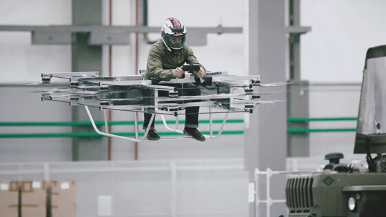 Устройство оснащено большим количеством винтовых механизмов, одновременное вращение которых и позволяет ему держаться в воздухе.