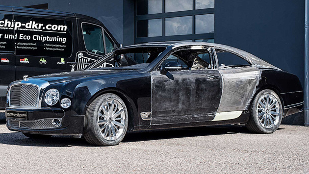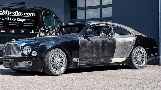 Немецкий тюнер Mcchip-DKR построит в единственном экземпляре уникальную версию Bentley Mulsanne – с кузовом «купе». Фотографии процесса работы на машиной опубликованы на официальном сайте фирмы. О купе Mulsanne известно пока мало. Судя по снимкам, тюнеры серьезно поработали над автомобилем: появилась карбоновая крыша и двери, средняя стойка сдвинута назад и изготовлена с нуля для этого проекта. Также изменилась вся задняя часть кузова от двери до заднего крыла, которая теперь выполнена из алюминия. Стандартный седан Bentley Mulsanne оснащается 6,75-литровым восьмицилиндровым двигателем мощностью 512 лошадиных сил (1020 Нм) и восьмиступенчатым «автоматом». В ателье намерены увеличить мощность агрегата до 600 сил (максимальный крутящий момент при этом возрастет до 1200 Нм). Разрабатывается машина по заказу клиента или это собственный проект ателье, пока не уточняется. Также нет информации о том, сколько может стоить такая переделка. Однако доработка мотора – обычный Stage 1 -- оценивается в 3,5 тысячи евро.