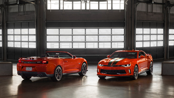 Компания Chevrolet показала особые модификации купе и кабриолета Camaro, которые посвящены 50-летию сотрудничества автопроизводителя и Hot Wheels. Новинки получили название Hot Wheels 50th Anniversary Edition. От любой другой версии Camaro новинка отличается особой окраской кузова, полосками на капоте и крышке багажника, 20-дюймовыми колесными дисками, иной фальшрадиаторной решеткой, черными эмблемами, оранжевыми тормозными суппортами, шильдиками особой серии, а также декоративными вставками оранжевого цвета в интерьере. Компания Chevrolet будет предлагать этот набор доработок для Camaro в версиях 2LT и 2SS. Его стоимость составит 4995 долларов (288 000 рублей) дополнительно к цене автомобиля. Первый публичный показ Chevrolet Camaro Hot Wheels 50th Anniversary Edition состоится в конце октября на тюнинг-шоу SEMA. Это не первый случай сотрудничества Chevrolet и Hot Wheels. В 2012 году американский автопроизводитель сделал особую модификацию Camaro, вдохновением для которой послужила масштабная модель из коллекции производителя игрушек.