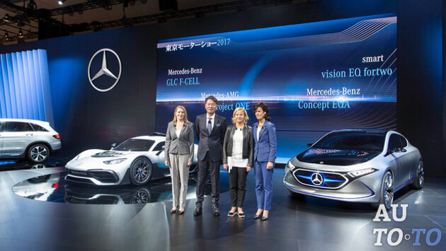 Mercedes-Benz и AMG дают представление о будущем мобильности с рядом новинок, впервые показанных на азиатском континенте. Самой захватывающей, безусловно, является Mercedes-AMG Project One, который дебютировал в прошлом месяце во время Франкфуртского автосалона 2017 года, и в настоящее время он демонстрируется в Токио, где останется до 5 ноября. Разработанный с использованием технологии Формулы-1, двухместный гиперкар имеет 1,6-литровый двигатель V6 с турбонаддувом и четыре электродвигателя. Они работают вместе, чтобы произвести общую мощность свыше 1000 л. с., и позволяя ускоряться машине до 100 км/ч менее чем за 6 секунд и достигать максимальной скорости более 350 км/ч. Первые экземпляры производства впечатляющего Mercedes-AMG Project One пройдут по дорогам в 2019 году. В компании с экзотическим гиперкаром на Токийском автосалоне 2017 года был представлен GLC F-Cell, который входит в фазу его производства. Он сочетает в себе технологию топливных элементов и аккумуляторных батарей, и на водороде он может путешествовать до 437 км и до 49 км от электричества. Также вместе с ними Mercedes-Benz представил концепцию EQA, которая впервые была показана во Франкфурте в прошлом месяце. На выставке в Токио автомобиль демонстрирует свой язык дизайна Sensual Purity, два электродвигателя, постоянную систему AWD и способность путешествовать примерно на 400 км расстояния между зарядами.