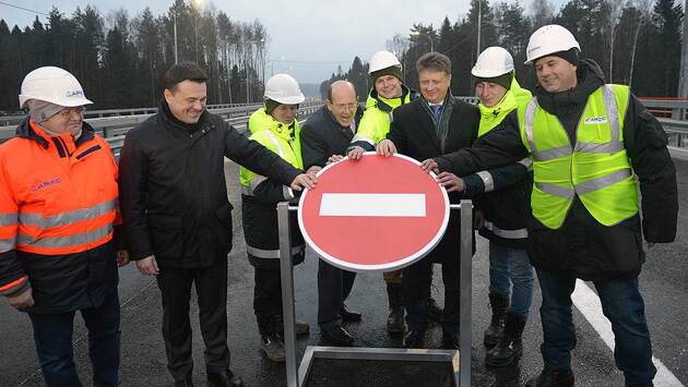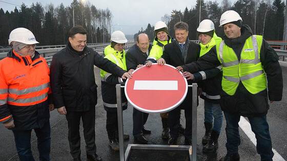 Первый участок ЦКАД открыли министр транспорт Максим Соколов, губернатор Подмосковья Андрей Воробьев и глава госкомпании «Автодор» Сергей Кельбах. Речь идет о 3,6-километровом обходе Звенигорода. Раньше через город ежедневно следовало 40 тыс. автомобилей, включая грузовики, пояснил господин Воробьев, что не устраивало жителей. Теперь транзитный транспорт поедет по новой четырехполосной дороге со скоростью 60 км/ч. Ранее, отметим, строительство дороги вызвало недовольство жителей одного из микрорайонов Звенигорода: господин Кельбах заявил, что по их просьбе высота шумозащитных экранов, отделяющих дома от трассы, была увеличена с 3,5 до 6 м.