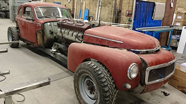 Шведский автомобильный энтузиаст Виктор Йонссон построил безумный автомобиль на основе компакта 1960 года Volvo PV544. В городской автомобиль Йонссон умудрился впихнуть огромный 38,8-литровый V12 от танкового мостоукладчика. Колоссальный мотор был позаимствован у мостоукладчика Brobandvagn 971, построенный на базе танка Т-55. Вес только мотора почти достигает 1 тонны. Если учесть, что с завода PV544 оснащался 1,6-литровой «четверкой» на 66 сил, то нынешний монстр выдает 520 дизельных «лошадей» при моменте 2 300 Нм. Тем не менее, от этого момента доступны лишь 700 Нм, которые удалось достичь с помощью планетарного редуктора. Привод идет на задние колеса с помощью «автомата» ZF от седана BMW 525 TDS.Читайте статью на QutoЧитайте также:Видео: Мотоцикл для Путина впервые проехался по трассе «Формулы-1»Видео: Сани на «Ниссане» — искрометный читинец взбесил полициюSkoda начнет выпуск электрокаров с 2020 года