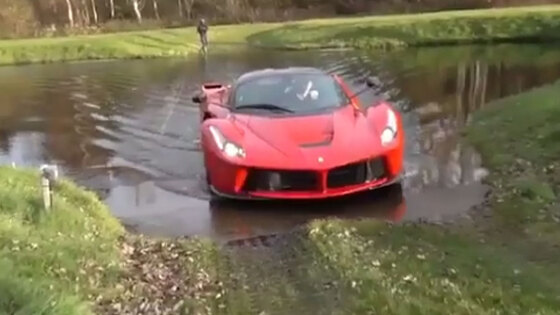 В интернете появилось видео, в котором показано, как супергибрид Ferrari LaFerrari преодолевает брод. Ролик опубликован на странице autogespot_lifestyle в социальной сети Instagram. Кто проехал в машине по воде и зачем он это сделал, не уточняется. Купе Ferrari LaFerrari выпустили в 2013 году. Модель укомплектована гибридной силовой установкой, которая состоит из 6,3-литрового мотора V12, электродвигателя, «робота» с двумя сцеплениями и комплекта батарей. Суммарная отдача составляет 963 лошадиные силы. Стоимость LaFerrari равна 1 400 000 долларов. Всего было выпущено 500 таких автомобилей.