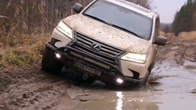 Видео: Простая русская лужа вырубила Lexus с одного гидроудара