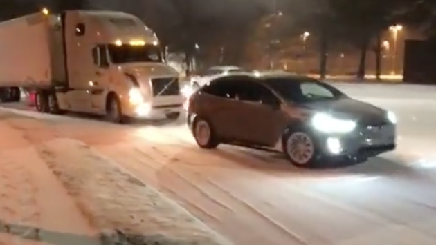 В Сети появился ролик, на котором электрический кроссовер Tesla Model X буксирует застрявший на обледенелой дороге тягач. Видео, размещенное пользователем Кайл Коннер в социальной сети Facebook, снято в Северной Каролине. Этот штат сильнее других пострадал от снежной бури, обрушившейся на северо-восток США. В описании к ролику указано, что Model X способен буксировать прицеп с массой до 2268 килограммов. Помимо этого, вседорожник оборудован системой, контролирующей распределение тяги между осями для оптимального сцепления с дорогой. Топовая модификация Tesla Model X — P100D — оснащается двумя электромоторами, расположенными на передней и задней оси. Их суммарная отдача составляет 774 лошадиные силы и 967 Нм крутящего момента. С нуля до «сотни» электрокар способен разгоняться за 3,1 секунды. Максимальная скорость — 250 километров в час.