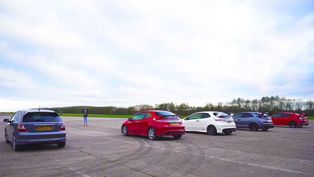 Пять «Сивиков» четырех поколений сравнили в дрэг-гонке