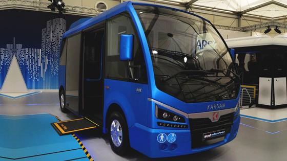 На недавней выставке Busworld Europe в Кортрейке компания Karsan презентовала оригинальную концепцию маршрутного автобуса – Small Bus. На международной выставке Busworld Europe в Кортрейке на стенде турецкого производителя Karsan была показан а маршрутка будущего, сообщает источник. Это компактный автобус Jest Electric длиной всего 5845 мм, шириной 2055 мм и высотой 2630 мм. Колесная база – З750 мм. При таких скромных габаритах салон вмещает до 23 пассажиров. Здесь 9 стационарных кресел и 3 откидных. Салон низкопольный, имеет откидную рампу, а потому приспособлен для перевозки инвалидной коляски. Радиус разворота впечатляет 6,8 м. В машине заложена уникальная концепция Small Bus. Автобус имеет долговечный кузов на пространственном каркасе. Он оцинкован – гарантия от коррозии составляет 10 лет. Маршрутка будущего оснащена полностью независимой подвеской: передней типа Мак-Ферсон, задней – на продольных рычагах и пружинах. $(function() { SyntaxHighlighter.all(); }); $(window).load(function() { $('.flexslider').flexslider({ animation: "slide", start: function(slider) { $('body').removeClass('loading'); } }); }); Самое интересное, что Karsan Jest Electric имеет нулевой вредный выброс в атмосферу, так как приводится в движении электромотором мощностью 125 кВт и крутящим моментом в 290 Нм. Мотор питают литий-ионные батареи емкостью 33 или 66 кВт.ч. Запас хода соответственно достигает 80 или 165 км. Максимальная скорость 70 км/ч. При этом компактный электробус может преодолевать подъемы крутизной до 25%. В ближайшее время маршрутка будущего Karsan Jest Electric будет запущена в серийное производство. Вам также будет интересно узнать: Маршрутка будущего на выставке Busworld Xiaomi представила новый полезный гаджет для водителей Новый Mercedes-Benz Sprinter 2019: первое официальное видео