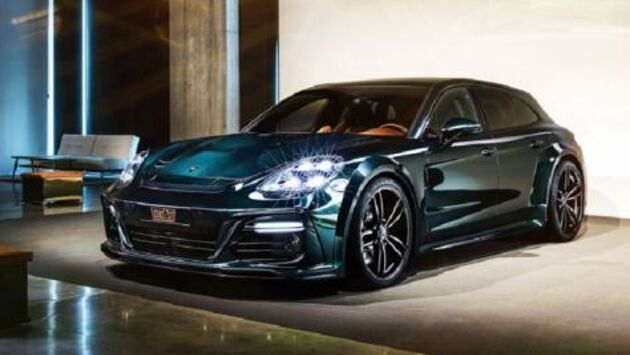 Немецкая студия TechArt продемонстрировала пакет GrandGT, разработанный для универсала Porsche Panamera Sport Turismo, который представят на Женевской автовыставке нынешнего года. Тюнеры позволят владельцам спортивного авто индивидуализировать свою машину. Так, кузов «сарая» окрасили в особый тон Racing Green. Кроме того, автомобиль получил 22-дюймовые колёсные диски Formula IV и «хощный» задний диффузор, в которой интегрированы патрубки выхлопной системы. А также, Porsche Panamera Sport Turismo GrandGT by TechArt укомплектовали новой заниженной подвеской и широкофюзеляжным аэродинамическим обвесом, в который вошли расширители колёсных арок и много спойлеров. Салон «прокаченного» универсала отделали высококачественной кожей Nappa эксклюзивного цвета и алькантарой. Модернизировали умельца ателье и движок автомобиля. Теперь четырехлитровый 550-сильный агрегат V8, будет вырабатывать 640 лошадиных сил и 900 Нм. С таким мотором «сарай» сможет ускоряться с нуля до первой сотни всего за 3,4 секунды.