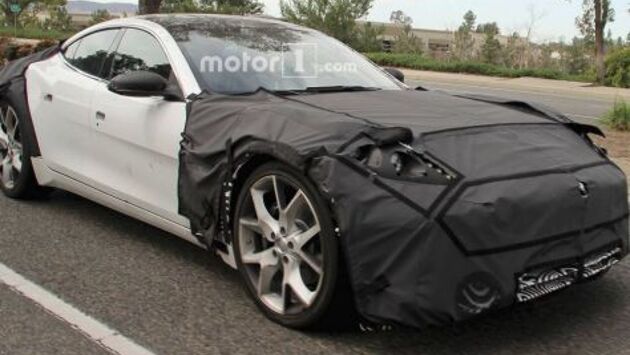 Папарацци наткнулись на очередное испытание электрического седана Karma Revero, передняя часть которого была скрыта тяжелым и плотным камуфляжем. На этот раз тестирование авто проводилось в условиях дикой природы Южной Калифорнии. Впервые электромобиль Karma Revero в кузове седан попал в поле зрения фотошпионов в сентябре прошлого года. Ранее китайская модель Revero была знакома потребителю как Fisker Karma. Однако с возрождением бренда автомобиль получит новый дизайн и может занять особе место на рынке гибридных производительных авто. От предыдущей версии новинку отличает новая решетка радиатора и фары, не исключено, что и капот получит новую форму. Помимо этого мы можем увидеть новый комплект задних фонарей сзади и реконструированную заднюю панель. Загляну в салон, мы видим большую красную кнопку «Emergency Stop» на центральной консоли, но красная ручка говорит о тестовом варианте, далеком от окончательной версии. На данный момент предполагается, что новый электроседан Karma Revero мы увидим не ранее следующего года.