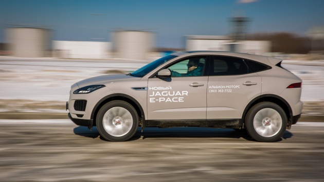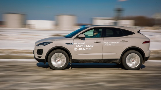 Это новый Jaguar E-Pace (предоставлен официальным дилером «Альбион Моторс»), и в жизни он не смотрится таким маленьким, как на картинках. Вполне себе полноценный кроссовер, с большими колёсами, высокий, с хорошим клиренсом. Его основная проблема — это детская мордочка с наивными фарами. Именно эти фары на картинках и делают автомобиль каким-то маленьким жуком. Если уж и создавали уменьшенную копию F-Pace (его мы тестировали прошлой зимой), то почему нельзя было сделать такие же узкие дерзкие фары? Нет логического объяснения этому. Зачем-то сюда пересадили лицо от родстера Jaguar F-Type, но там-то как раз оно неплохо смотрелось. Впрочем, кому-нибудь мягкое выражение лица нового кроссовера, наоборот, понравится. Корма удалась — здесь узкие фонари, заходящие далеко на крылья. Они скопированы с F-Pace и немного перерисованы — круглые ямки на внутренних частях получили угловатую форму. А большой спойлер красиво накрывает заднее стекло. В профиль этот спойлер слегка удлиняет 4,4-метровый автомобиль и добавляет ему стремительности. Без него машина и вовсе походила бы на какой-то шарик. Если во внешности новой машины есть много пересечений со старшим братом F-Pace, то в салоне тут всё по-другому. Интерьер подчеркнуто асимметричен — для водителя сделали подобие кокпита, а пассажира отгородили массивной ручкой, за которую можно держаться. Селектор АКП выполнен на основе нефиксируемой рукоятки, но мне больше нравится традиционная лендроверовская шайба — она удобней, компактней и информативней. А здесь при переводе селектора нужно хорошенько поджимать кнопку снизу — пару раз я втыкал рычаг в положение D, но вместо езды получал рёв мотора — передача не включалась. Руль без приливов, быстро и равномерно прогревается. Забегая вперед, отметим, что руль здесь в машине, наверное, самое приятное — и по тактильным ощущениям, и по своему функционалу. Наконец-то блок стеклоподъёмников перенесли вниз, в человеческое место. У многих «Лэнд Роверов» и у F-Pace он находится на полке у окна — надо задирать руку. Выемка под дверной ручкой элегантно оформлена алюминием, в темноте в нём красиво переливаются лучи декоративной подсветки. Экран мультимедиа широкий, работает быстро, не подвисает. Вот бы его ещё поднять повыше к уровню глаз, а то при постоянной работе, например с навигацией, приходится наклонять голову. Блок климата снабжён огромными кругляшами — это удобно. А если бы они были потуже и потяжелее на ощупь — стало бы вообще хорошо. Кожаные кресла производят впечатление качественно скроенных изделий, неудобств они не доставляют, бока поддерживают. Несмотря на небольшую длину, сзади места хватает — сиденья немного утоплены вниз. Подлокотник высокий, и это удобно. А куда же делись потолочные ручки? Пассажирам просто не за что держаться на кочках. Двери снизу оснащены основательными пластиковыми кожухами, которые полностью закрывают пороги от грязи и призваны обеспечить стерильность при посадке/высадке. Багажник на вид не производит впечатление особо вместительного, хотя его объём заявлен 577 литров. В подполе большая запаска, она вместе с инструментами занимает там всё пространство. Сам пол складывается пополам, но никак не фиксируется. У нас на тесте 2-литровый дизель мощностью 180 сил, и особо он никуда не торопится. Заявленный разгон до сотни 9,3 секунды. Работа дизеля 