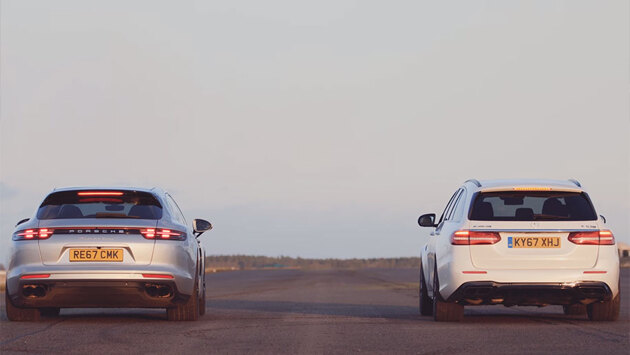 «Заряженные» универсалы Porsche Panamera Turbo Sport Turismo и Mercedes-AMG E 63 S сравнили в гонке по прямой на дистанциях в четверть мили (402 метра) и в полмили (804 метра). Ролик с заездом размещен на канале издания Auto Express на YouTube. Обе модели оснащены системами полного привода. «Мерседес» комплектуется четырехлитровым битурбо мотором V8, отдача которого составляет 612 лошадиных сил. Porsche также комплектуется «восьмеркой», но ее мощность равняется 550 лошадиным силам. В декабре 2017 года британское издание CarWow сравнило универсал Mercedes-AMG E 63 S с Dacia Logan MCV. Модели сравнили в гонке по прямой, а также на торможении. А вы уже читаете «Мотор» в Телеграме?