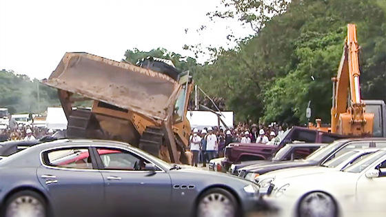 Cреди них были Maserati Quattroporte, BMW B12 Alpina, Porsche 911 GT3, BMW Z1, Opel Manta, Renault R5 и двухдверный Mercedes-Benz G-Wagen. Общая стоимость машин составила полмиллиона долларов. Президента упрекнули в бессмысленной трате денег, однако он заявил, что демонстративное уничтожение покажет решимость властей Филиппин в борьбе с контрабандой. Кстати, по данным СМИ, на очереди еще 841 автомобиль. Крепитесь.