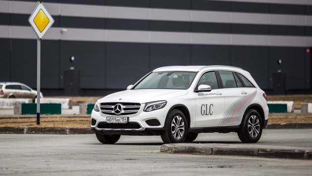 Кроссовер Mercedes-Benz GLC может быть представлен в классическом виде с «прямым» багажником или в спортивно-гламурном виде купе. У нас на тесте классика (машина предоставлена официальным дилером «СТС-автомобили»), причём довольно скромная — никаких особых обвесов, колёса с высоким профилем, простые колёсные диски. Спереди автомобиль не сказать что так уж брутален. Умеренная внешность — как раз такая, которая нравится большинству. Низкая капотная линия, высокое лобовое стекло, стандартные «мерседесовские» фары. В профиль уже видно, что это кроссовер. Неплохой дорожный просвет (18,1 см), по аркам и порогам пущена чёрная пластиковая защита. Стандартные колёса с высоким профилем, конечно, не сильно украшают экстерьер, но зато делают автомобиль комфортным на неровностях. Задняя часть получилась немного скомканной — какие-то легковые фонари, слишком большие по высоте на внешних краях, маленькая крышка багажника. Хромированный двойной выхлоп не до конца вписывается в простенький чёрный низ бампера. Больше всего GLC нравится своим салоном. Главный акцент здесь — большая деревянная накладка на центральной консоли. Она хоть и пластиковая, но неплохо имитирует древесную фактуру тёмного благородного оттенка. Боковина этой панели оформлена чёрной вставкой и металлизироваными полосками — получилось интересное объёмное сооружение. Впрочем, есть один нюанс — из-за большой ширины этой накладки место в коленях может показаться узковатым. Салон «Мерседеса» традиционно собран аккуратно и без изъянов. Спереди пластик от верха до низа — мягкий, фактурный. Передняя панель, двери обшиты кожей, есть кожа и на боковинах центрального тоннеля. На дверях продолжается всё то же тёмное дерево, впрочем, можно заказать и другую отделку. В мягких дверных карманах две выемки под бутылки. Интерьер GLC — самая актуальная разработка компании, поэтому аналоговые приборы прежних поколений выглядят здесь немного наивно. Кресла обиты плотной кожей, которая обещает долго не изнашиваться. В этой комплектации частично есть электрорегулировки сидений, но нет поясничного подпора. А подпор этот вообще нужно ставить в базе на каждый «Мерседес». На задних местах исчерпывающий запас пространства, подлокотник посажен высоко — это удобно. Спинки складываются нажатием кнопки электрозамка. Багажник — умеренный для кроссовера, 550 литров. Уровень пола удобен для погрузки, в подполе — куча всяких ящичков и выемок. Под капотом GLC 2-литровый турбированный мотор мощностью 211 л.с. Он разгоняет кроссовер до сотни за 7,3 секунды. Мотор гибкий, сбалансированный, с хорошим запасом тяги в 350 Н·м. При резком нажатии газа — небольшая задержка, раскрутка двигателя и потом хороший рывок с 3000 оборотов. Если продавливать педаль газа постепенно, но уверенно, никакой задержки нет, при этом автомобиль всё равно динамично набирает скорость. При старте с двух педалей мотор даёт раскрутить себя до тех самых 3000 оборотов, и вот тогда мы получаем настоящий толчок в спину. Возможно, комфортабельная подвеска и стала одной из причин такой популярности GLC у покупателей. Здесь она действительно комфортная, мягкая, сглаживающая даже острые края ям. Конечно, и высокопрофильная резина даёт свой эффект, но чувствуется, что прежде всего сам автомобиль заточен под то, чтобы максимально ограждать своего владельца о