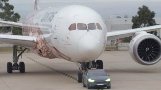 В Сети появилось видео, демонстрирующее впечатляющие способности электрического кроссовера. Видео на своем YouTube-канале выложила авиакомпания Qantas из Австралии. Ролик показывает, как электроссовер Tesla Model X P100D тянет на буксире Boeing 787-9 Dreamliner. Кадры с автомобилем и пассажирским авиалайнером были сделаны на маневровой дорожке аэропорта Мельбурна. Напомним, кроссовер американской марки оснащается электрической силовой установкой, в составе которой работают два мотора, развивающих комбинированную мощность 773 л.с. и 967 Нм крутящего момента. За питание отвечает аккумуляторный блок емкостью 100 кВт*ч. Вес автомобиля составляет 2 468 кг. Максимальный вес Boeing 787-9 Dreamliner равен 193 тонны, тогда как пустой самолет весит 126 тонн. Лайнер может принять на борт 290 пассажиров и 126 тысяч литров топлива. Максимальная скорость машины равна 956 км/ч. Отметим, что несмотря на рост популярности кроссоверов в последние годы, у Tesla лучше продается седан Model S. Например, в 2017 году на европейском рынке было продано 11 877 единиц Model X и 16 026 – Model S, на американском рынке эти показатели составили 21 315 и 27 060 штук, соответственно. Ранее портал «Карельские Вести» публиковал видео с Tesla Model X, буксирующим состав вагонеток массой более 113 тонн. Это видео в своем твиттере выложил глава Tesla Элон Маск на вопрос о буксировочном потенциале кроссовера от одного из подписчиков. По материалам: www.kolesa.ru