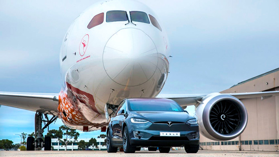 Электрокар протащил за собой 300 метров по полю аэродрома гигантский Boeing Dreamliner весом более чем в 130 тонн. Эта акция удалась благодаря сотрудничеству Tesla и авиакомпании Qantas - самого крупного воздушного перевозчика Австралии. И если выгода для Tesla понятна - они вновь показали удивительные возможности своих машин и займут строку в книге рекордов, - то Qantas прорекламировали свой новый маршрут: Dreamliner отныне будет летать из Австралии в Лондон. Напомним, что Tesla Model X P100D это внедорожник, представленный в серийной версии в 2016 году. Он является самым быстрым серийным кроссовером на электрической тяге в мире, способным разогнаться до сотни всего за 3,1 секунды. При этом мощность двигателя составляет 762 лошадиные силы.