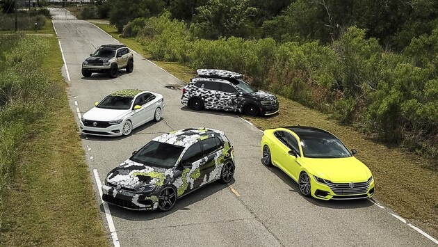Американское подразделение производителя построило несколько концептов на базе серийных моделей. Некоторые идеи, воплощенные в проектах, были предложены фанатами марки. В оформлении четырех из пяти концептов используется флуоресцентная желтая тема в качестве ключевого элемента. Шоу кары были представлены в рамках выставки SOWO, проходившей с 17 по 20 мая на острове Хатчинсон, расположенный на реке Саванна в штате Джорджия, США. Кузов концепта Volkswagen Golf R Abstract покрыт уникальной камуфляжной пленкой. Хот-хэтч оснащается набором эксклюзивных 20-дюймовых колес FR в цвете Mystic Black от ABT Sportsline и комплектом спортивных пружин подвески от H&R Springs, занизивших дорожный просвет на 2,5 см. Специалисты ABT оснастили также автомобиль боковыми юбками и «четырехствольной» выпускной системой из нержавеющей стали с матовыми хромированными черными выхлопными патрубками. Внутри установлен заказной карбоновый руль BAK Performance Mk 7 с голубой прострочкой Golf R. Еще один концепт базируется на Volkswagen Jetta R-Line 2019 модельного года и получил название SoCal и оформление по мотивам Mk2 Jetta. Особенностями автомобиля стали флуоресцентные желтые корпуса боковых зеркал, глянцевая черная крыша с геодезическим флуоресцентным желтым дизайном и белые колеса под цвет кузова с желтыми акцентами. Автомобиль оснастили прототипом коиловер-системы ST XTA от KW, позволяющей уменьшать дорожный просвет автомобиля на 3 дюйма (около 7,62 см), а также комплектом 19-дюймовых колес fifteen52 Formula GT. Концептуальный кросс Volkswagen Tiguan R-Line Aero тоже получил камуфляжную пленку на кузов, пневмосистему 3P Air Management System от Air Lift Performance, которая позволяет уменьшать клиренс на величину до 4,8 дюйма (12,2 см). Установлен комплект черных матовых 20-дюймовых колес Rotiform Monoblock CCV с порошковым верхним слоем покрытия и багажник Thule Motion XT Alpine на крыше, покрытый аналогичной с кузовом пленкой и смонтированный на системе Thule AeroBlade Edge. Четвертый концепт – Volkswagen Arteon R-Line Highlight. Лифтбек укомплектовали 20-дюймовыми колесами Hybrid Forged HF-2 от Vossen и прототипом регулируемой подвески Ultra Low Coil Overs от H&R Springs, которая позволяет уменьшить дорожный просвет почти на 3 дюйма (7,5 см). Кузов машины покрывает флуоресцентная желтая пленка, подчеркивающая черные глянцевые и хромовые элементы отделки пакета R-Line. Последним стал концепт большого кроссовера Volkswagen Atlas Tanner Foust SEMA, укомплектованный большими шинами и внедорожными колесами, расширенными крыльями и защитными накладками на нижней части кузова. Переработанный бампер увеличил угол проходимости, что улучшило защиту днища. Машину также оснастили дополнительной светотехникой в бампере и на крыше, а на крыше экспедиционную решетку, доступ к которой осуществляется через лестницу, крепящуюся на корме. Единственным изменением в салоне стали клетчатые вставки в обивке сидений, напоминающие о наследии линейки GTI. Ранее портал «Карельские Вести» рассказывал о новой версии Golf GTI, представленной Volkswagen на встрече фанатов GTI в австрийском Вёртер-Зее. Там же была представлена пара спецверсий модели Golf. По материалам: www.kolesa.ru